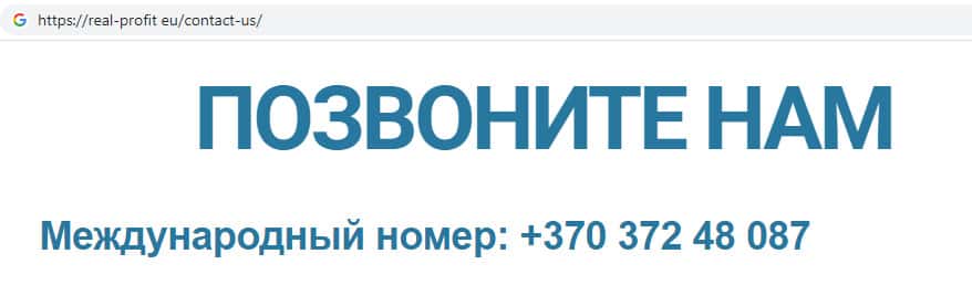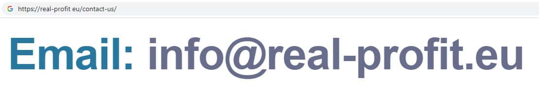 Жульническая организация Real-Profit Eu, главный офис которой находится в Литве, на своем официальном сайте указала номер контактного телефона своей организации, а так же указывает адрес электронной почты своей конторы, который указан ниже: