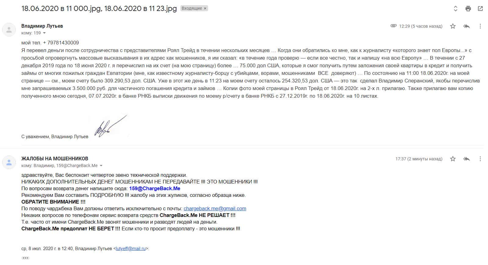 - Жалоба на Реал Трейд от жертвы мошенников