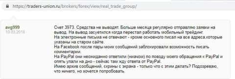 Шайка проходимцев Real Trade не реагирует на жалобы клиентов