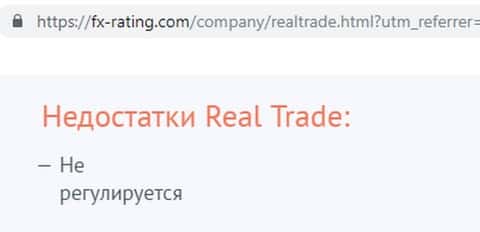 - Real Trade не имеет лицензии и не регулируется