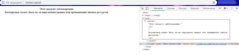 На моменте, когда шулера Red Star Capital развернули свою противозаконную деятельность по облапошиванию клиентов, ими начали интересоваться правоохранительные органы. Дабы избежать обнаружения/наказания или же с целью переждать, мошенники Ред Стар Капитал удалили содержимое своего сайта, заменив его на строки кода о том, что домен заблокирован. Внешний вид сайта лохотрона Red Star Capital вы можете увидеть на изображении ниже.