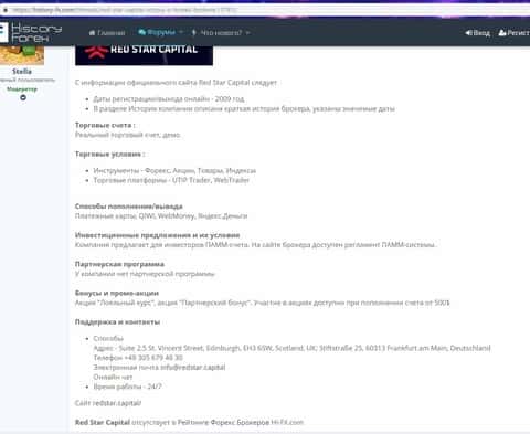 - Автор информационной статьи о жуликах форекс Red Star Capital