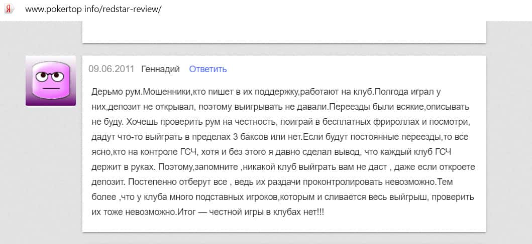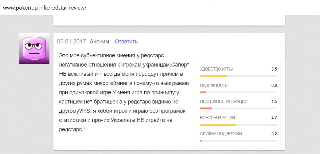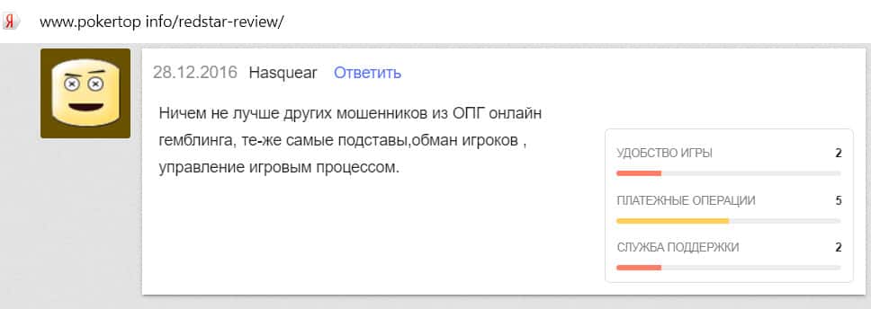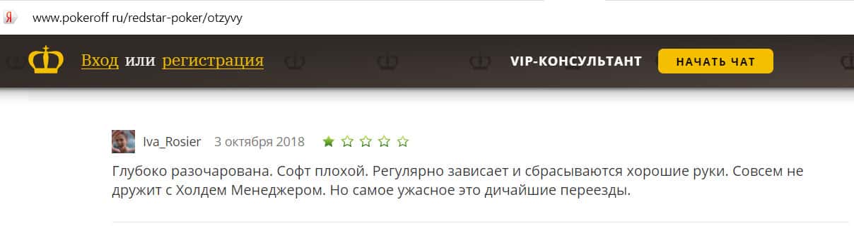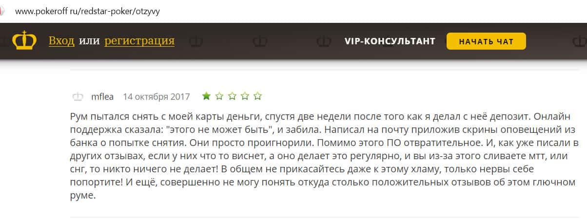 Мошенникам из Ред Стар Покер люди не доверяют и называют лохотроном