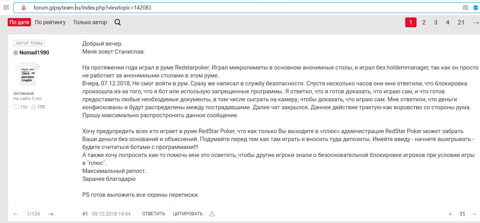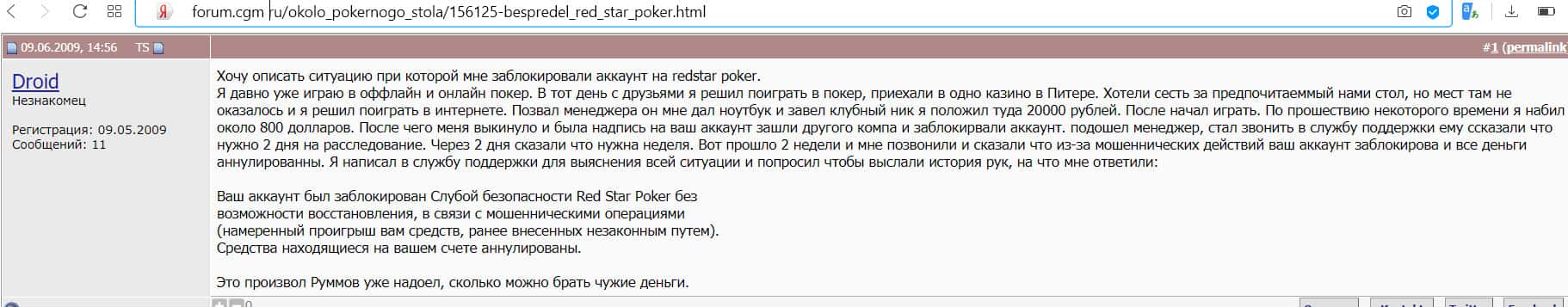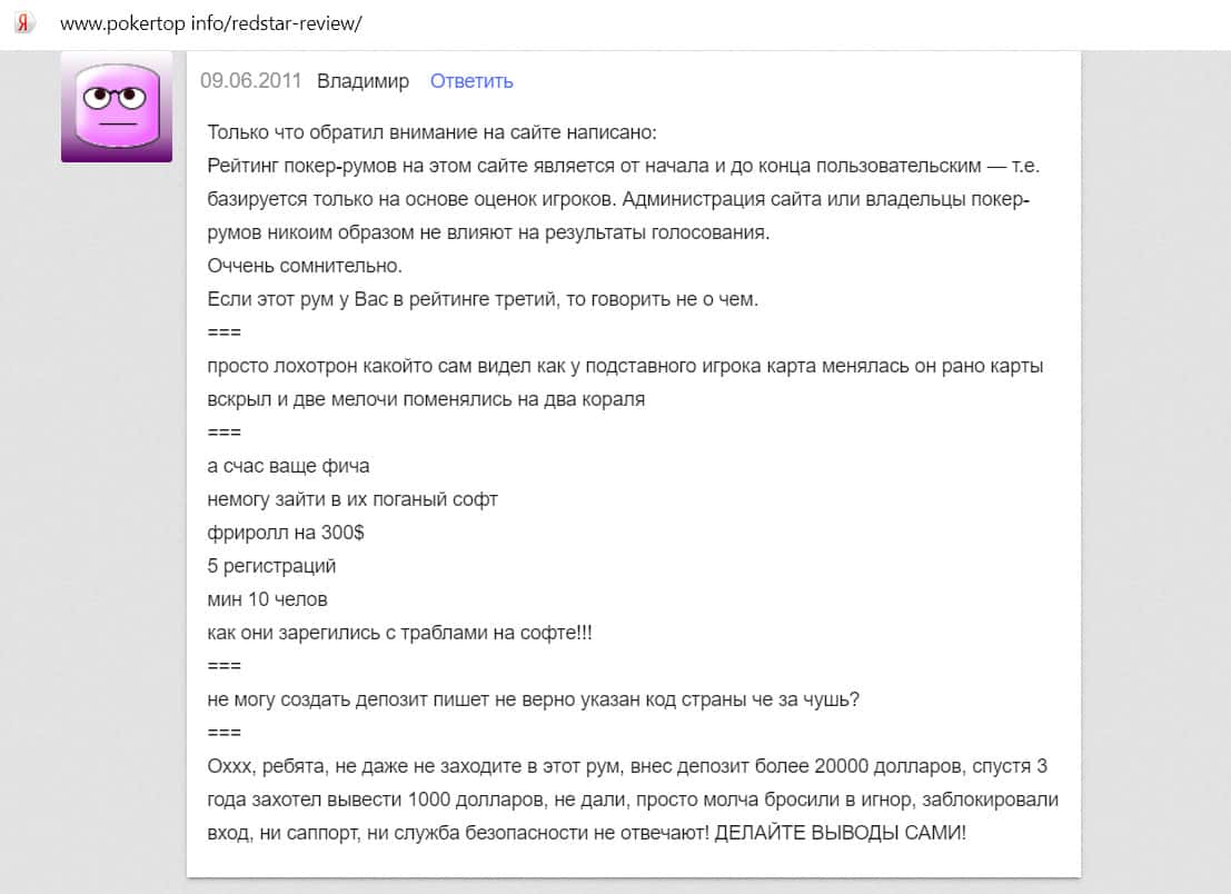Отзывы людей, которых обманули наглые разводилы Ред Стар Покер