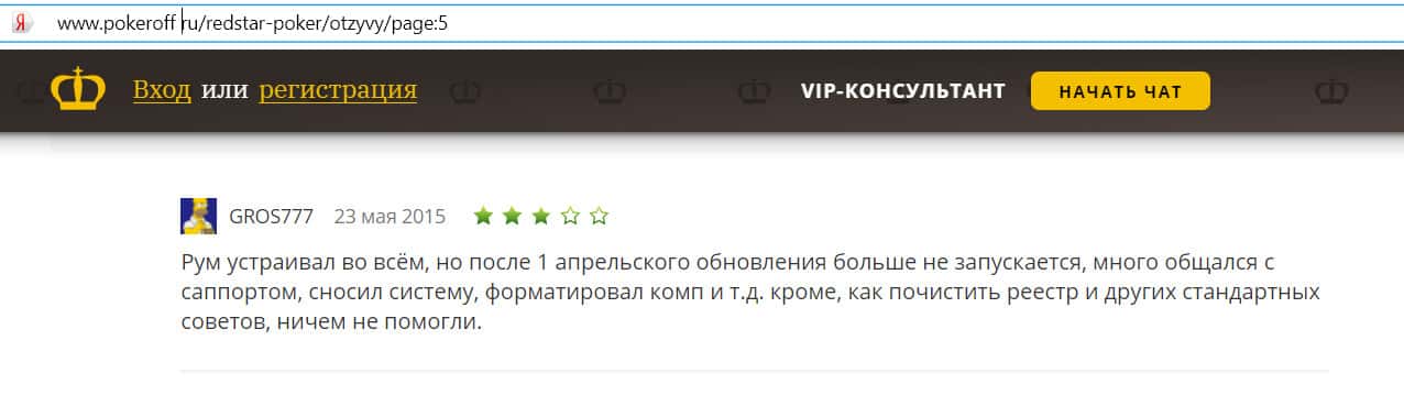 Бывший игрок Ред Стар Покер говорит, что раньше сайт его устраивал, но после обновления он перестал запускаться. Техподдержка никак ему не помогла решить проблему.
