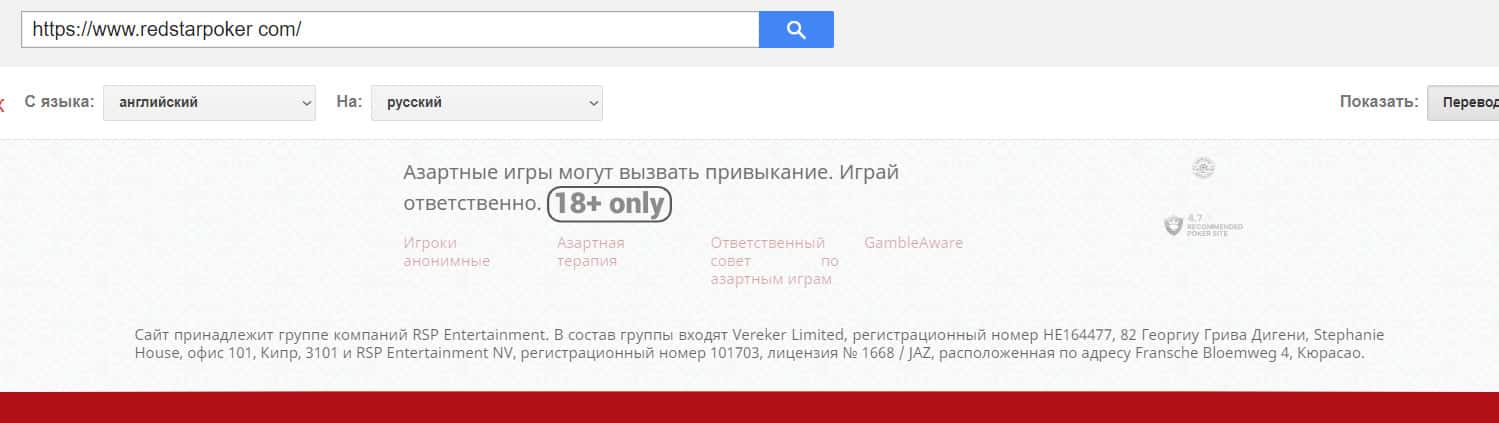 Никакой информации о лицензии контора Ред Стар Покер не предоставляет. На их сайте нет ни слова об этом документе, хотя подобные компании должны их иметь.