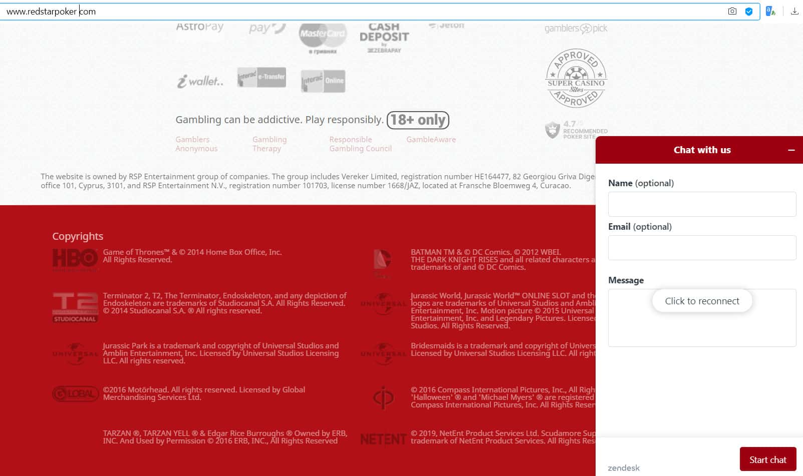 Очередной игрок на сайте Ред Стар Покер пожаловался на техподдержку. Он говорит, что сотрудники хамят и внаглую закрывают чат, что недопустимо для хороших компаний.