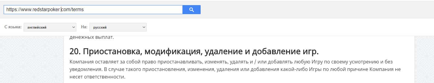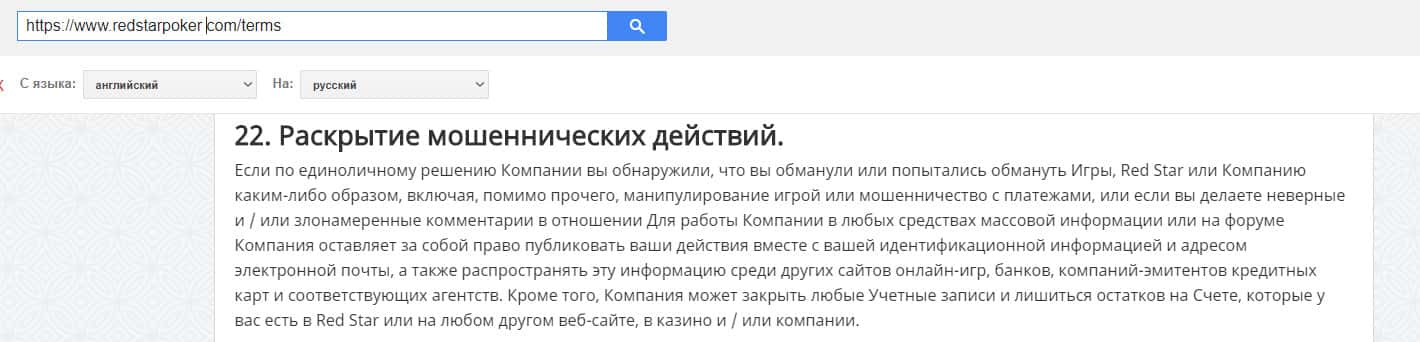 Также, лохотронщики RedStar Poker написали в своем договоре, что могут менять игры в любой момент, не уведомляя игроков.