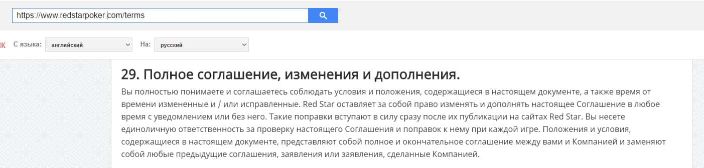 - Клиентское соглашение конторы Ред Стар Покер