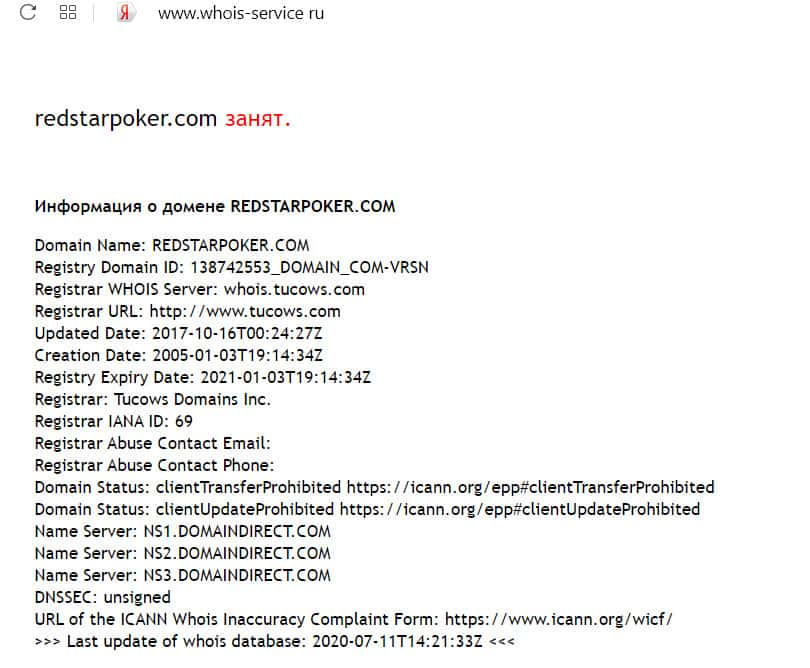 Информация о ом, кто владеет доменом redstarpoker com оказались скрытыми. Это показала проверка доменного имени на сайте whois-service ru.