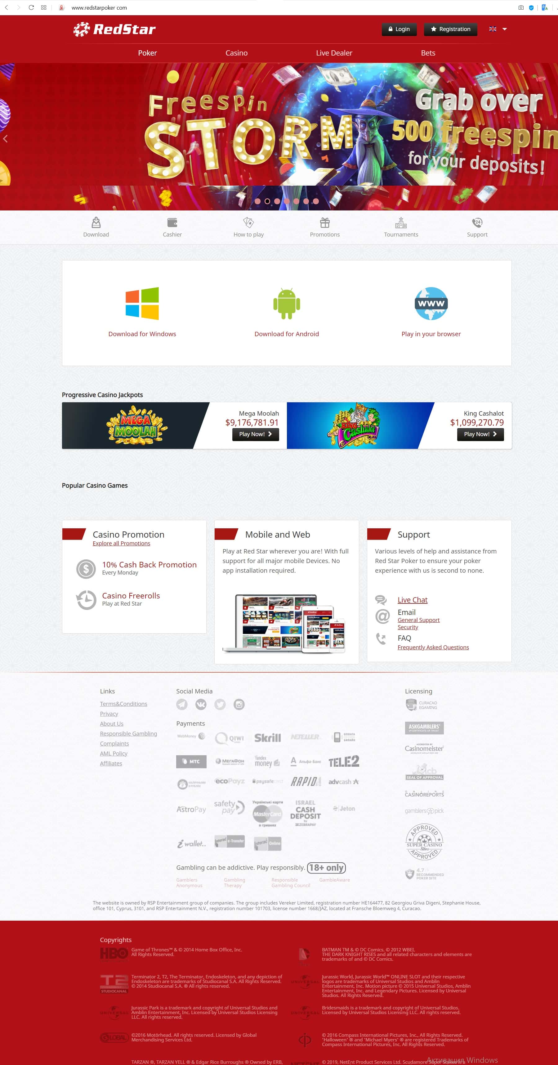- Как выглядит главная страница сайта Ред Стар Покер?