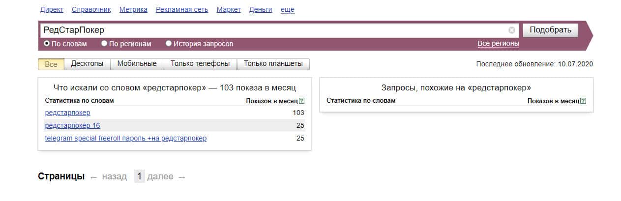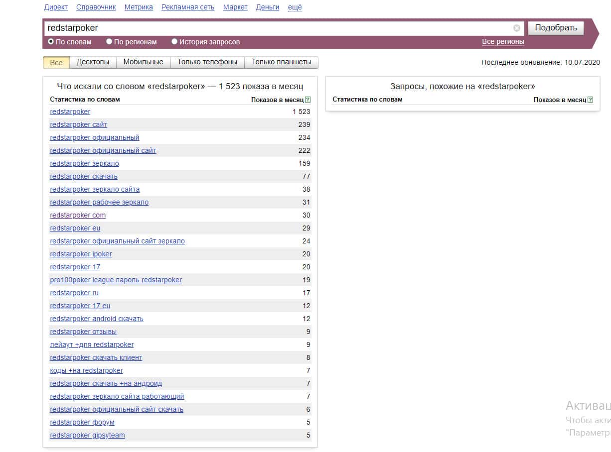 А вот запросов бренда "РедСтарПокер", введенного без пробелов уже меньше: всего 103.