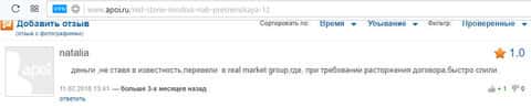 Отзыв от человека ставшего жертвой лохотрона Ред Стон, стал также такой неожиданностью, ведь все счета открываются через личный кабинет конторы Реал Маркет. Какая связь с ней пока не известно, ясно только то, что контора Red Stone - это мошенники, которые разводили людей налево и направо и чтобы с ними разобраться, лучше написать заявление в суд.