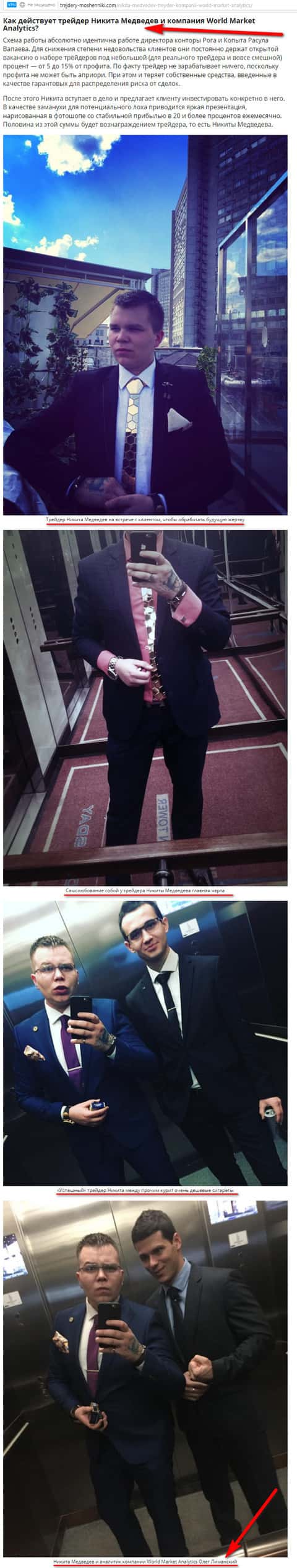 Начнем с того, что брокерская контора Red Stone, имела также название World Market Analytics, которая находилась по адресу в интернете wma24 ru. Дело в том, что эта контора также не работает уже, поэтому на сайте вы ничего не найдете. Так вот главным разводилой в данных конторах работал Никита Медведев, который представлен на фотографиях ниже. Он начинал воровать еще с 2016 года, что можно заметить по его записям в социальных сетях. Занимался он деятельностью по типу МММ, но в отличие от оного, этот шулер не платил ничего своим клиентам. Также у него есть коллега Расул Вапаев, который изображен на самой последней фотографии.