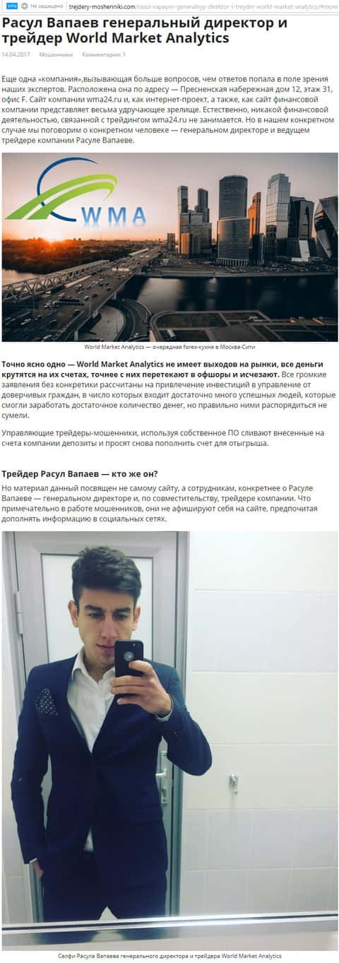 Еще один герой нашей статьи, который принял темную сторону и разводил вместе со своими пособниками клиентов кухни Ред Стон. Информация о Руслане Вапаеве довольно интересная, так как он представлен как генеральный директор конторы World Market Analytics, она же Red Stone. Этот тип является также трейдером по совместительству и имеет ключевую роль во всей этой схеме развода от 20-летних пацанов конторы Ред Стон.