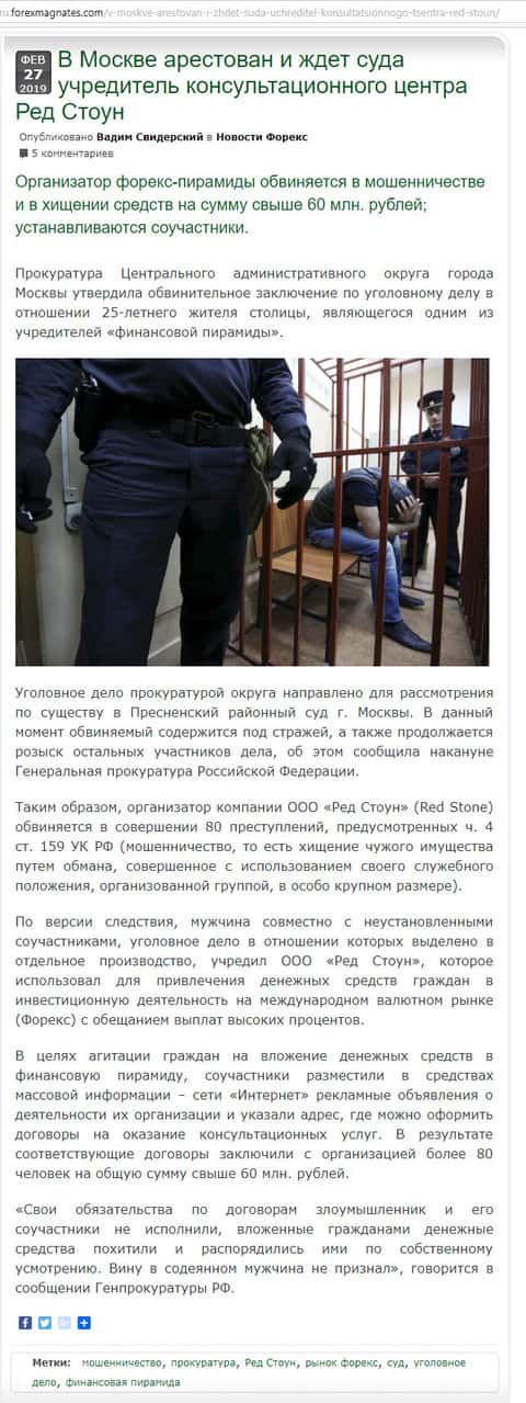Чтобы полностью разобраться, кто замешан в лохотроне Red Stone, нам удалось найти информацию на одном информационном ресурсе под названием trejdery-moshenniki com. Здесь описаны данные руководителей, трейдеров и других разводил, которые были участниками схем кидалова, проводившимися дилинговой конторой Ред Стон. Чтобы не быть голословным, дальше в разделах приведем все факты.