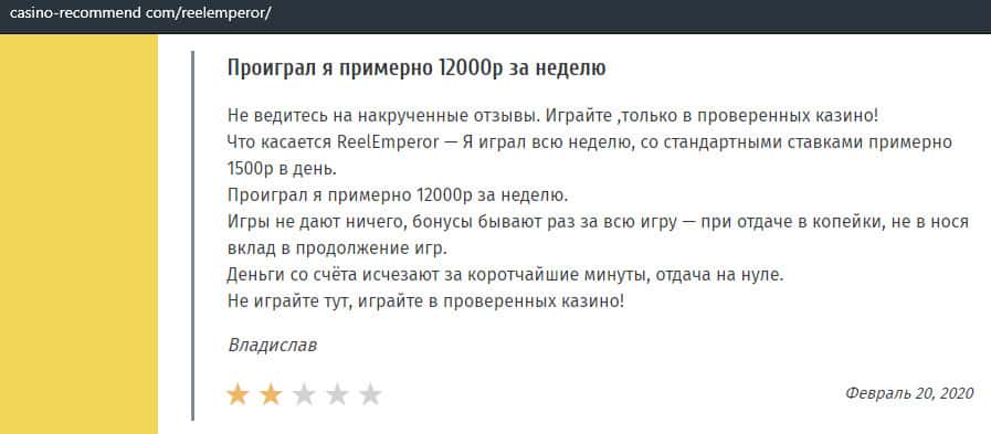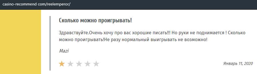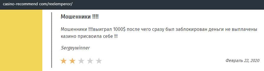 Люди не рекомендуют лохо-казино ReelEmperor