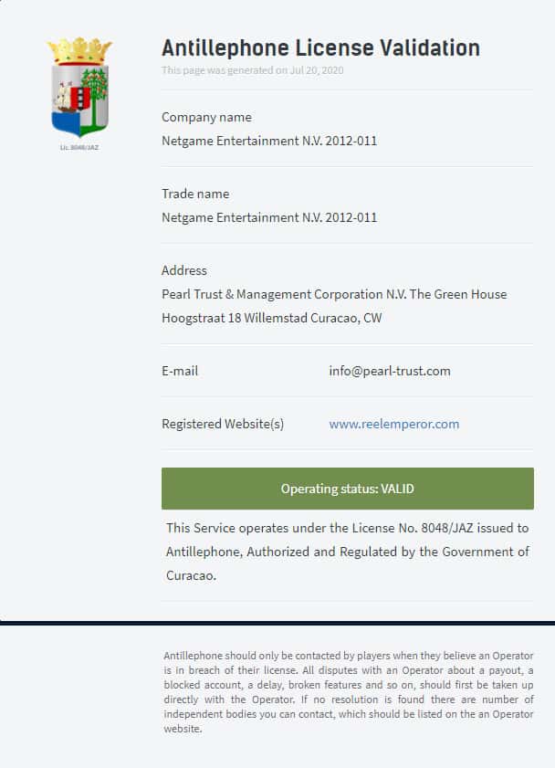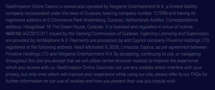 Казино ReelEmperor указывают, что они имеют лицензию от регулятора Кюрасао, но каждый должен понять, что такой документ может купить каждый, кто захочет кидать людей на деньги.