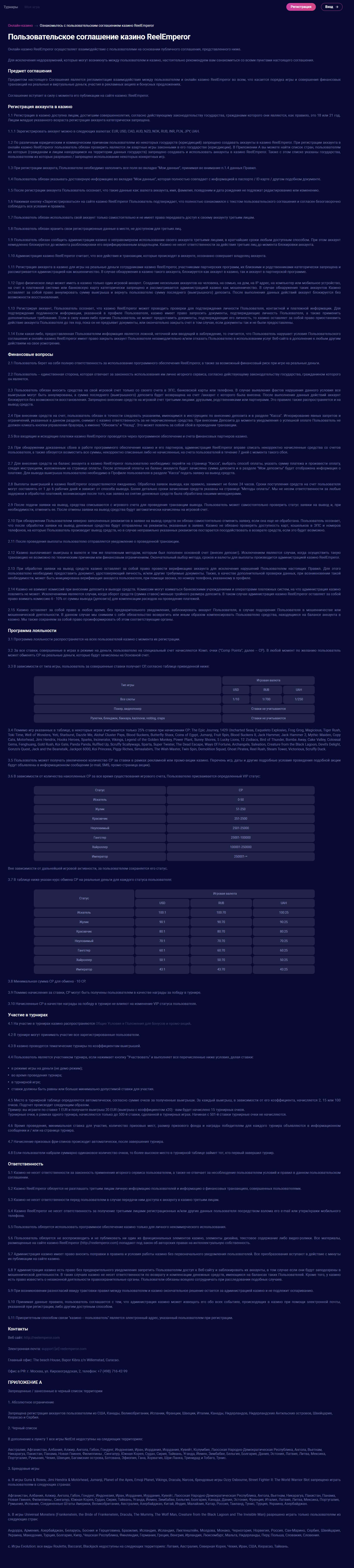 - Клиентское соглашение лохо-казино Реел Емперор