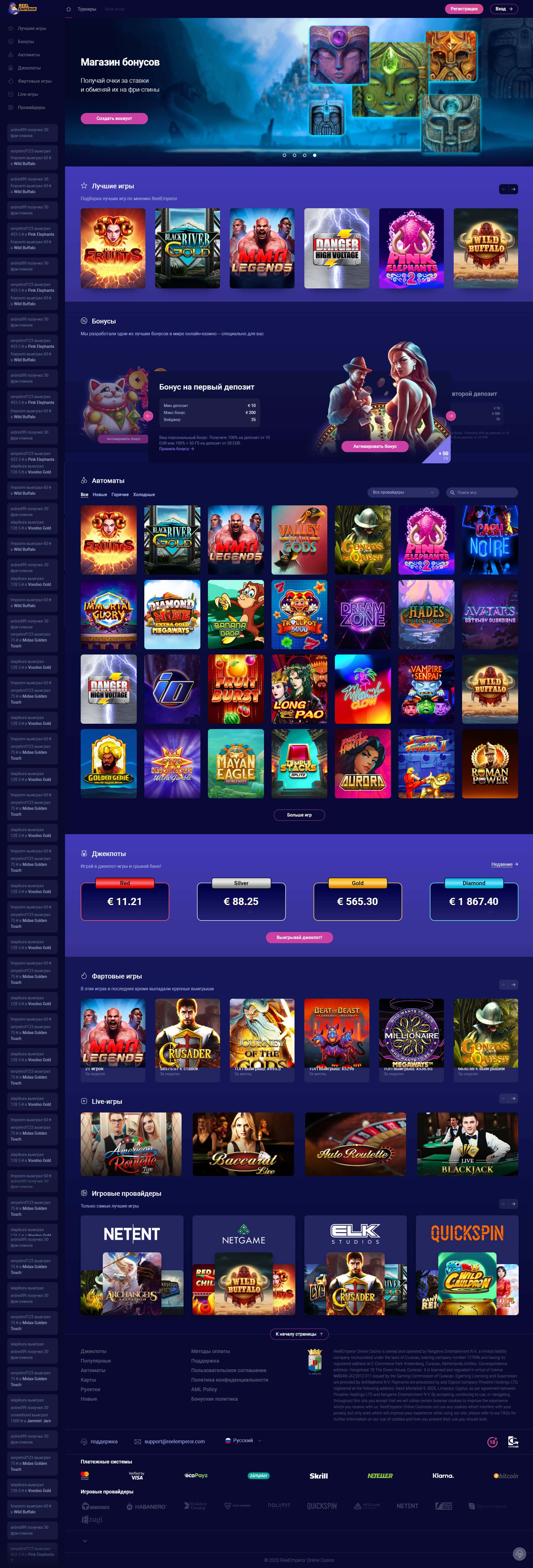 - Информация о недоказино ReelEmperor
