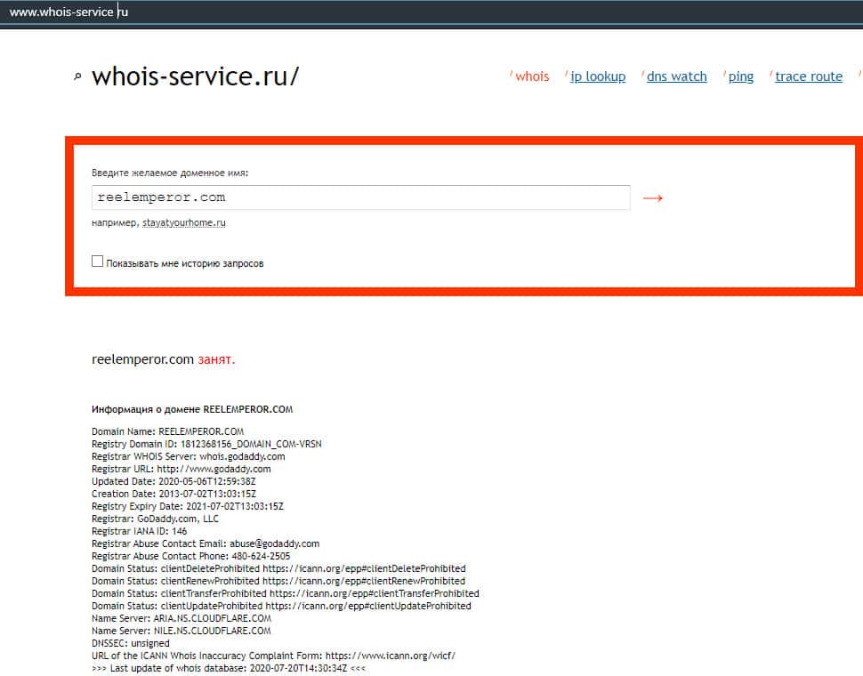 Информация о владельцах домена Реел Емперор
