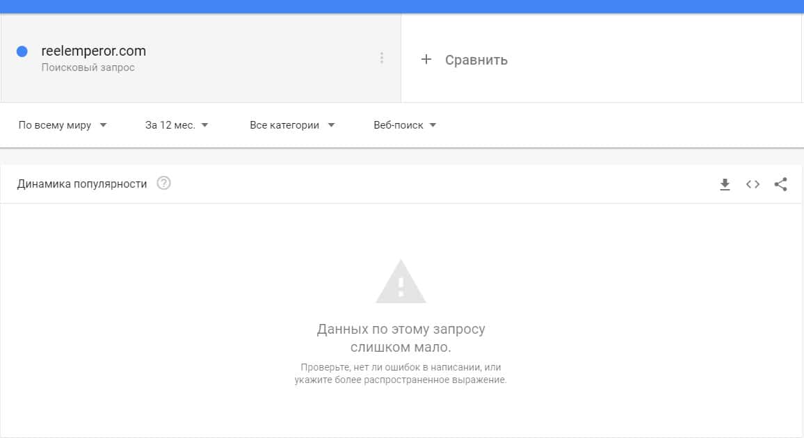 Тоже самое и касается запроса бренда "РеелЕмперор" в качестве их официального сайта - ни одного запроса в Гугл не было выявлено.