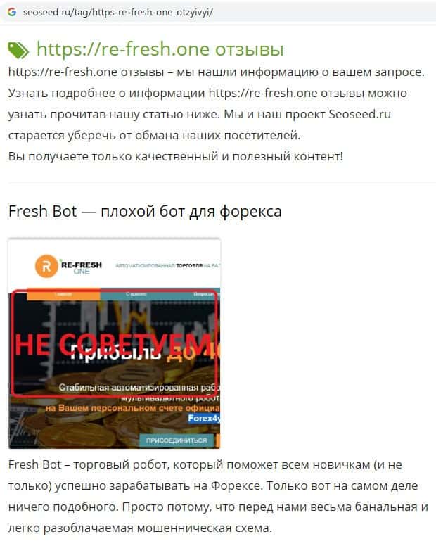 - Что говорят о мошенниках Re-Fresh One на разных сайтах?