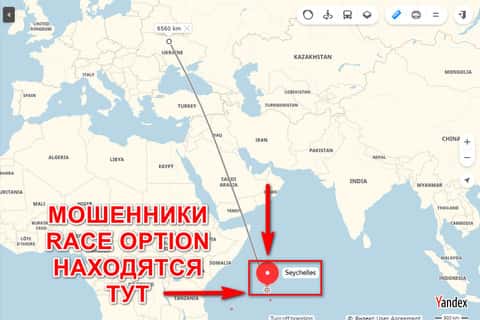 Что касается месторасположения офиса аферистов Race Option, то сначала стоит указать, что кухня зарегистрирована под другим названием, а именно как Race Projects Ltd. И если конечно вы найдете деньги на билеты, когда вас опрокинут в этой кухне, то можно зайти по адресу: 306 Premier Building, Albert Street, Victoria, Mahe, Сейшельские Острова, там с радостью откроют вам дверь.