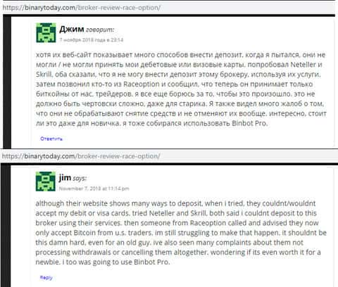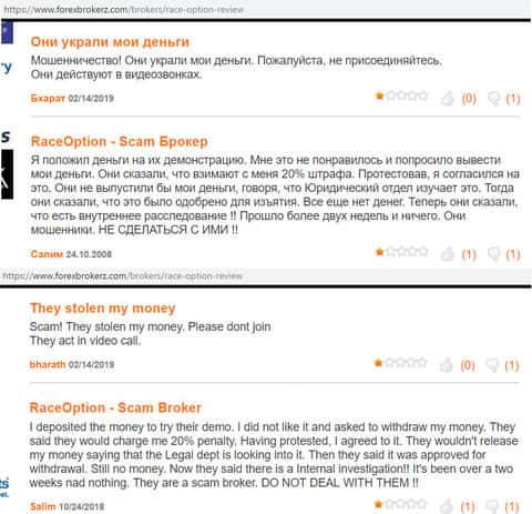 - Еще несколько настоящих отзывов от клиентов лохотрона Race Option