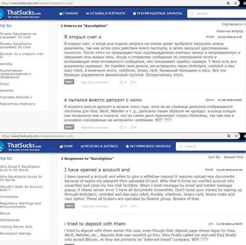 Негативные отзывы о конторе Рэйс Опцион от реальных людей