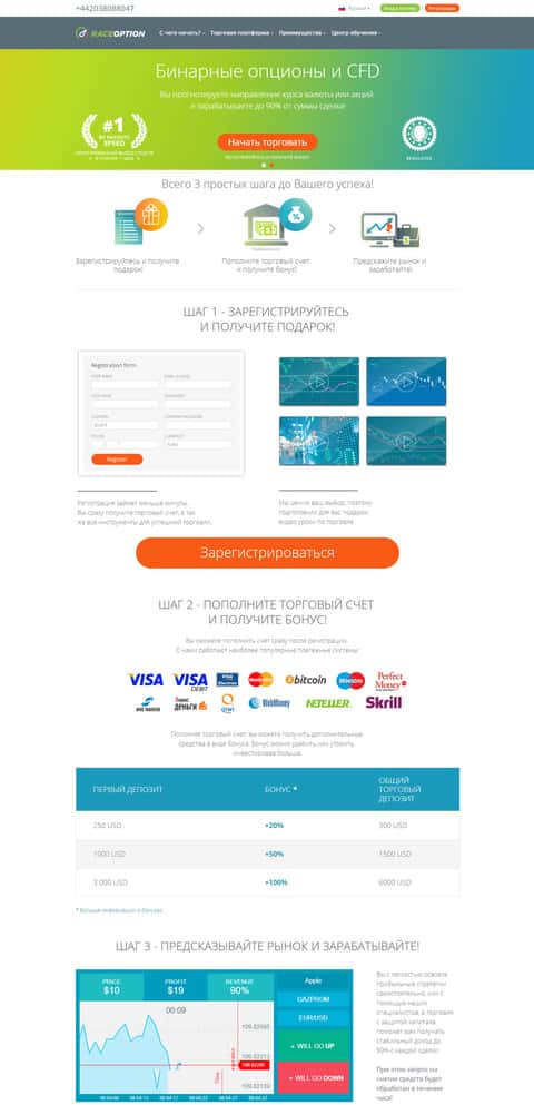 Красочный сайт бинарного лохотрона Рэйс Опцион сделан в стиле онлайн-казино, которое привлекает различными веселыми картинками, бонусами, конкурсами и нереальной статистикой. Все сделано для замыливания глаз человека, который на него попал. Естественно все реалии жизни и торговли, потом становятся уже не такими красочными и система заточена на повезет-не повезет.