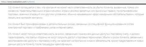 Вместо того, чтобы тратиться на какую-то лицензию, аферисты Рэйс Опцион решили поступить следующим образом. Они стащили в какой-то компании политику рисков и предоставили в виде вёрдовского документа своим клиентам. Там в общей сложности сказано - что клиент принимает на себя все риски, а контора Race Option ни за что не отвечает. Так и увиливают от ответственности эти жулики.