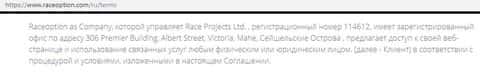 Клиентское соглашение позволяет конторе Race Option обманывать клиента