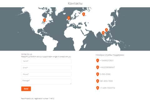 Информация по телефонам, на которые можно позвонить в контору Рэйс Опцион довольно обширная, поэтому человек может позвонить с любой точки мира. Но вопрос "зачем?" если шулера предпочтительно обворовывают своих клиентов на территории СНГ. Все это сделано для липового имиджа международной значимости конторы. Опытный глаз это видит, а вот новичек скорее всего клюнет. Ниже представлены все контакты жуликов Race Option.