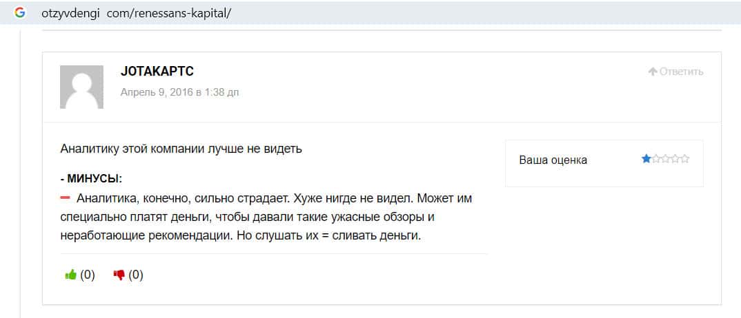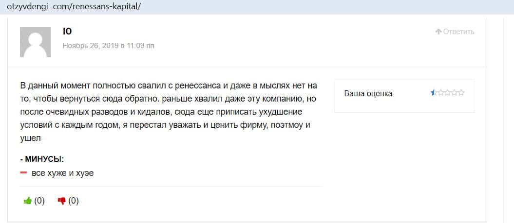 - Аналитику этой компании лучше не видеть - такой комментарий оставил трейдер на сайте Отзывденьги о брокере Ренессанс Капитал