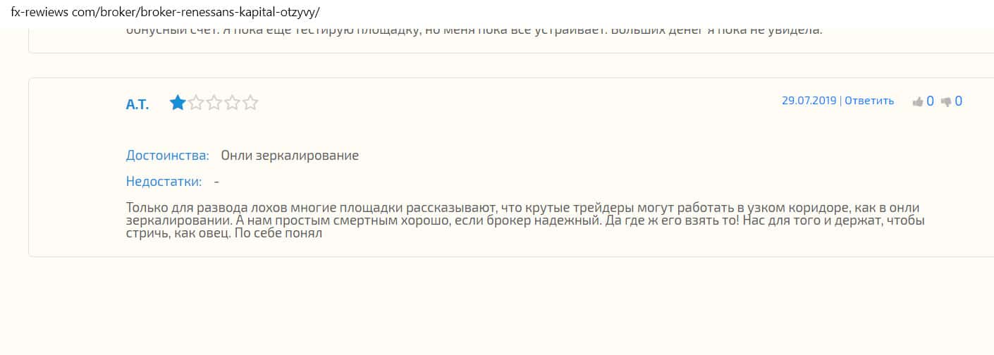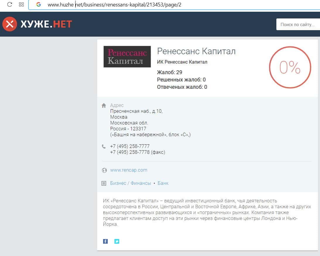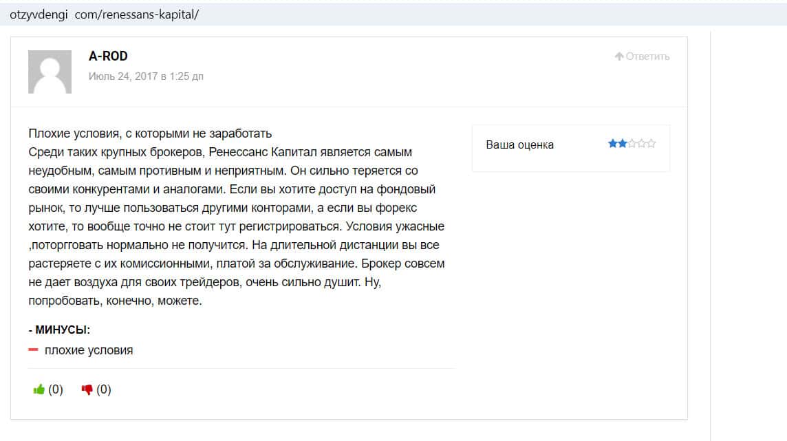 - Компания Ренессанс Капитал имеет репутацию одного из худших брокеров России: информация на сайте fx-rewiews com