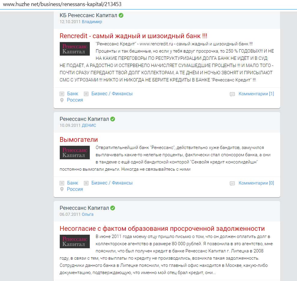 - Сайт Реальныеотзывы пишет о том, что организация Ренессанс Капитал имеет много плохих отзывов, поэтому в ее деятельности есть сомнения