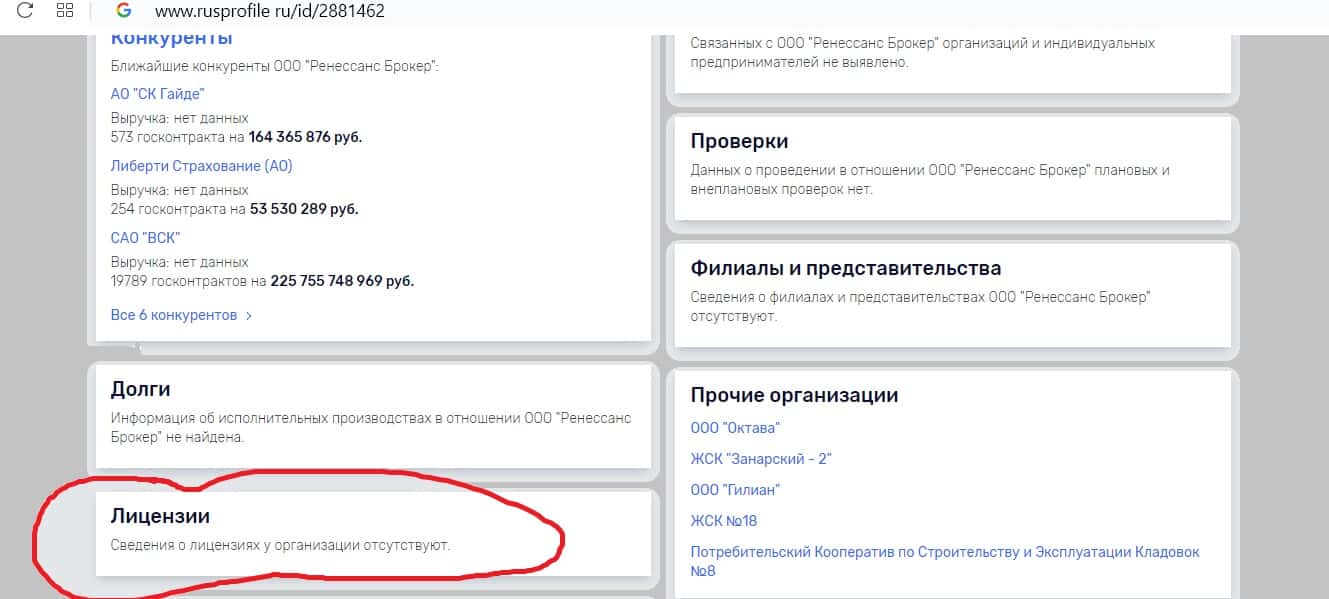 Многие люди думают, что Renaissance Capital является надежным российским брокером, так как организация действует длительное время, и это название у всех на слуху. Однако, жулики не имеют лицензии ЦБ. Зарегистрированы они в офшорной зоне, что является первым признаком неблагонадежности компании.