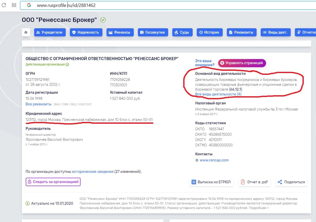 - Мошенники из Ренессанс Капитал создали фальшивую фирму, которая явно не соответствует заявленному ими статусу успешного брокера