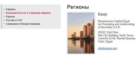 Контактная информация брокерской компании Renaissance Capital