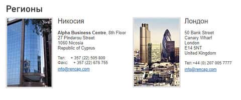 - электронная почта info@rencap com