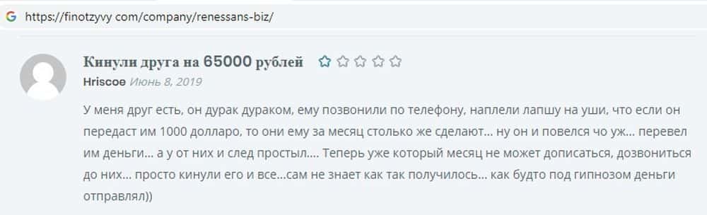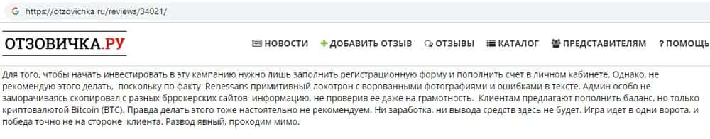 - Отзывы о кидалах Renessans