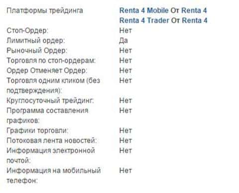 Дилинговый центр Renta 4 - это пример форекс брокера. Для торговли на валютном рынке форекс существует большое количество различных дилинговых центров и Renta 4 - один из них. К сожалению, большинство брокеров по всему миру работает по принципам кухни. Это проявляется в манипулировании торговым терминалом, невыплате профитов, нарушении брокером условий договора торговли, некачественном обслуживании клиентов и непрофессиональным персоналом. В сети есть специализированные форумы, где можно почитать отзывы реальных клиентов о сотрудничестве с тем или иным ДЦ. Часто среди них можно встретить и заказные. Также существуют рейтинговые порталы форекс брокеров, но и на них, к сожалению, можно купить место. О дилинговом центре Renta 4 пока мало информации в сети, но по мере ее появления, она будет добавляться в данную статью. Пока же, стоит быть крайне бдительным, доверяя свои деньги такому малоизвестному в России брокеру.