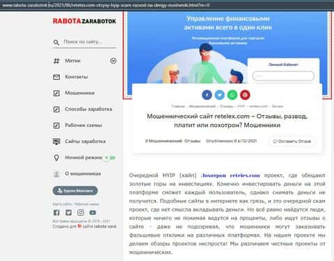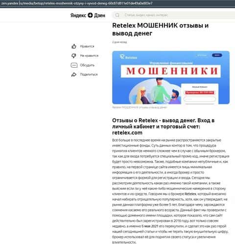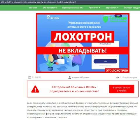 Ниже представлена еще одна статья о лохотронской конторе Retelex. Тут указывается, что шарага обещает золотые горы, а по факту вы вкладываете туда деньги и без права возврата.