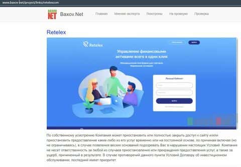 В данной статье отметили информацию касательно клиентского соглашения конторы Ретелекс. Там указано, что лохотрон Ретелекс в любое время может приостановить доступ к сайту.
