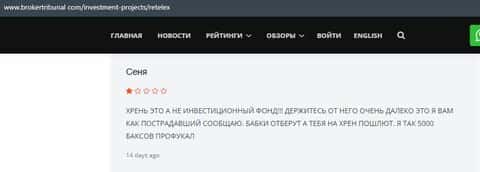 Очередной клиент отметил информацию, что контора Retelex не является никаким инвестиционным фондом. Он сам попробовал вложить и теперь не может вывести 5000 долларов.
