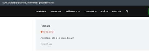 Очередной клиент подтвердил, что контора Retelex является обыкновенным лохотроном, который создан чтобы обворовывать наивную клиентуру. Поэтому жир никакой не хедж-фонд.