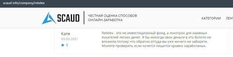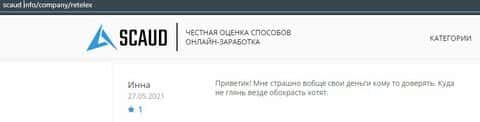 Еще один клиент отметил, что он боится вкладывать деньги в шулерскую контору Ретелекс. Он считает, что шарага ничем не отличается от других и просто хочет все деньги выманить.