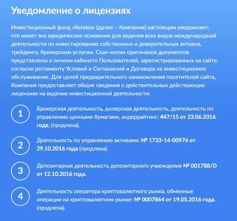 Лохотронская организация Ретелекс на своем сайте указала, что они являются регулируемым проектом. Хотя на самом деле нет ни единого документального подтверждения.