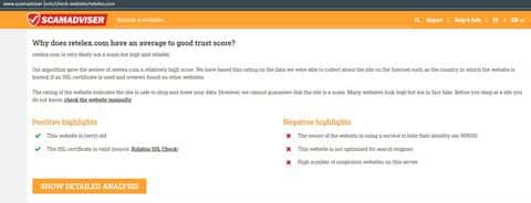Исходя из официальных данных касательно сайта аферистов Retelex согласно сервиса scamadviser com, данному порталу нельзя доверять, так как он имеет множество ошибок.